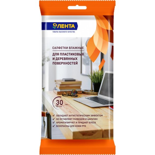 Салфетки влажные для пластиковых и деревянных поверхностей ЛЕНТА, 30шт в магазинах Лента