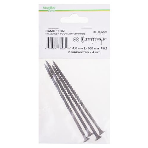 Саморез Каждый день гипсокартон-дерево 4,8x100, 4 шт (kastd) в магазинах Ашан