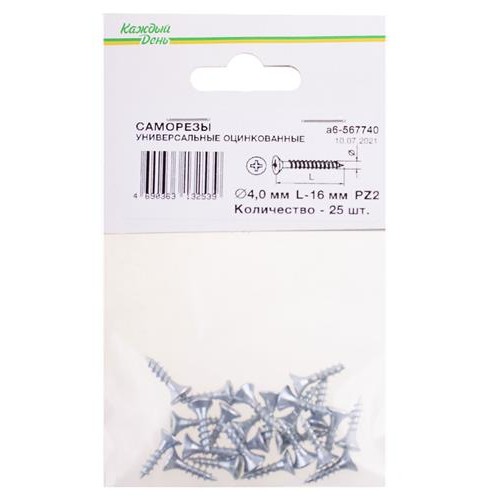 Саморез универсальный Каждый день 4x16 оцинкованный, 25 шт (kastd) в магазинах Ашан