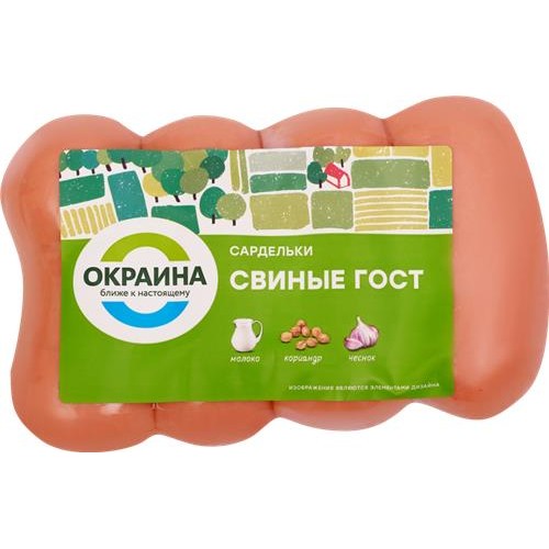 Сардельки ОКРАИНА Свиные, категория Б, весовые в магазинах Лента