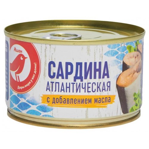 Сардина АШАН Красная птица натуральная с добавлением масла, 250 г (kastd) в магазинах Ашан