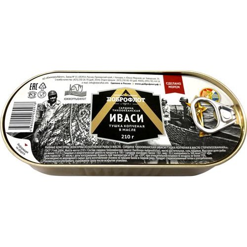 Сардина ДОБРОФЛОТ Тихоокеанская иваси, копченая в масле, 210г в магазинах Лента