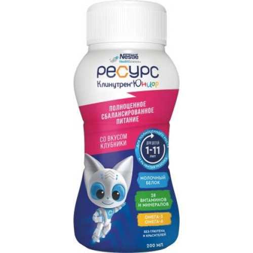 Resource Clinutren Junior предлагает вкус клубники, который точно понравится вашему ребенку. Это особенно полезно, когда ребенок избирателен в питании и трудно уговорить его есть что-то полезное.