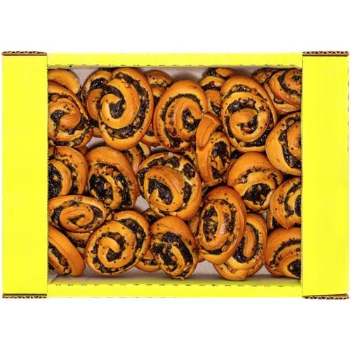 Мука пшеничная хлебопекарная высшего сорта, начинка маковая, краситель натуральный сахарный колер, соль, регулятор кислотностилимонная кислота, вода, маргарин молочный, патока, сахар, меланж, арахис, дрожжи прессованные, сыворотка молочная, консервантпропионат кальция.