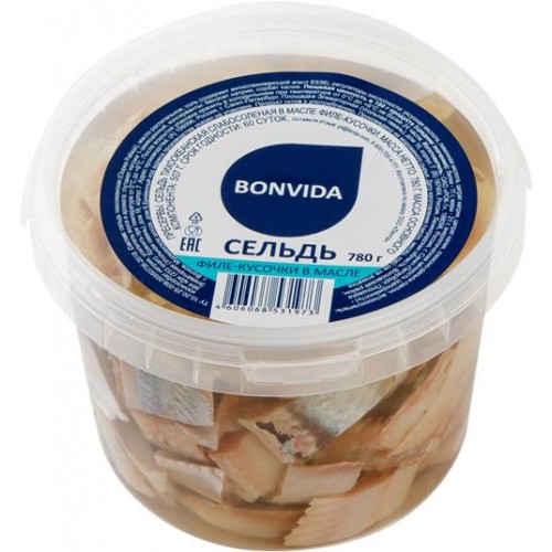 Сельдь BONVIDA филе-кусочки в масле, 780г в магазинах Лента