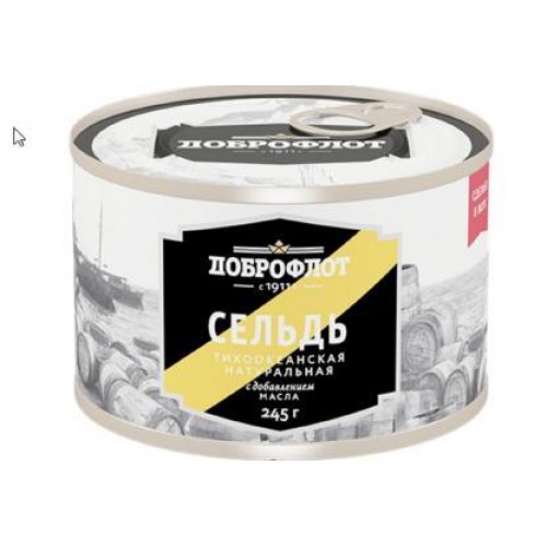 Сельдь Доброфлот тихоокеанская натуральная с добавлением масла 245г в магазинах Магнит