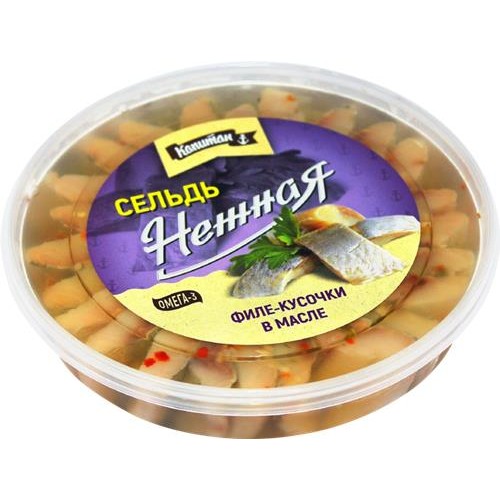 Сельдь КАПИТАН Нежная, филе-кусочки в масле, 300г в магазинах Лента