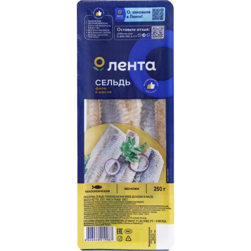 Сельдь ЛЕНТА филе в масле, 250г в магазинах Лента