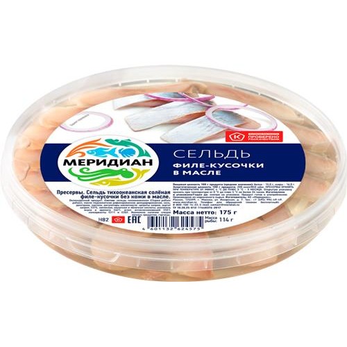 Сельдь МЕРИДИАН филе-кусочки в масле, 175г в магазинах Лента