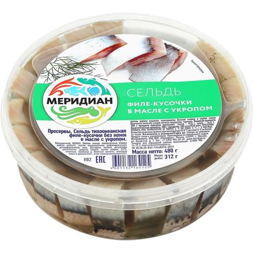Сельдь МЕРИДИАН филе-кусочки в масле с укропом, 480г в магазинах Лента