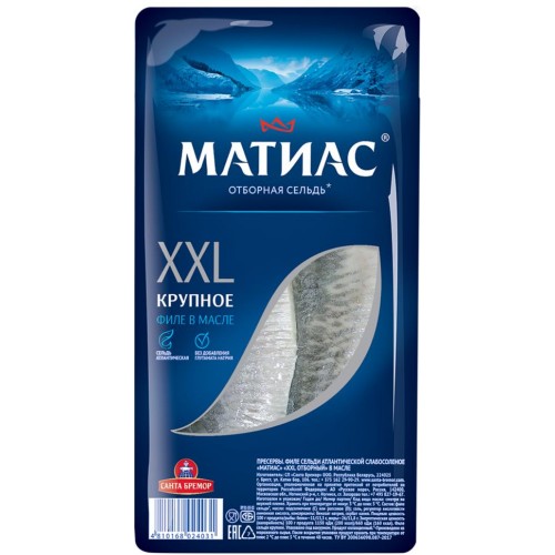 Сельдь САНТА БРЕМОР Матиас ХХL отборный, филе в масле, 300г в магазинах Лента