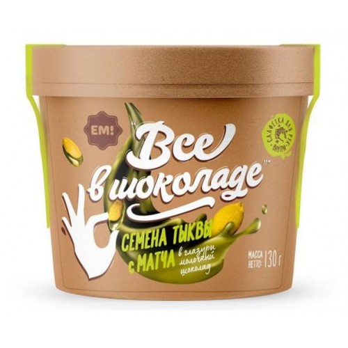 Семечки тыквы ЕМ! Все в шоколаде с матча в белой глазури, 130 г (kastd) в магазинах Ашан