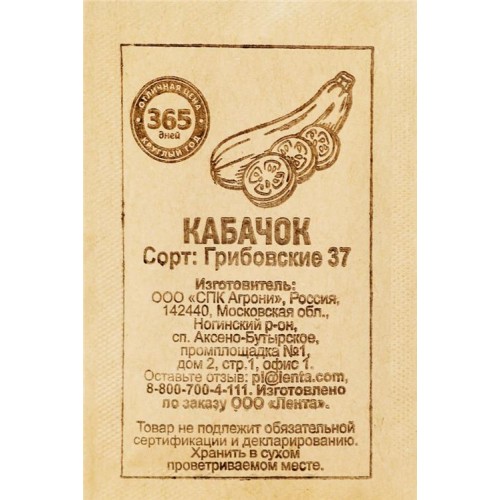 Семена 365 ДНЕЙ Кабачок Грибовские 37, 1г в магазинах Лента