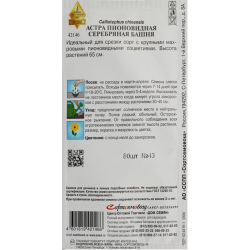 Семена ДОМ СЕМЯН Астра пионовидная Серебряная Башня, 0,3г в магазинах Лента