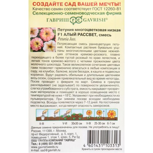 Семена ГАВРИШ Петуния Алый рассвет F1, многоцветная смесь, гранулированные, Арт. 1071856384, 7шт в магазинах Лента