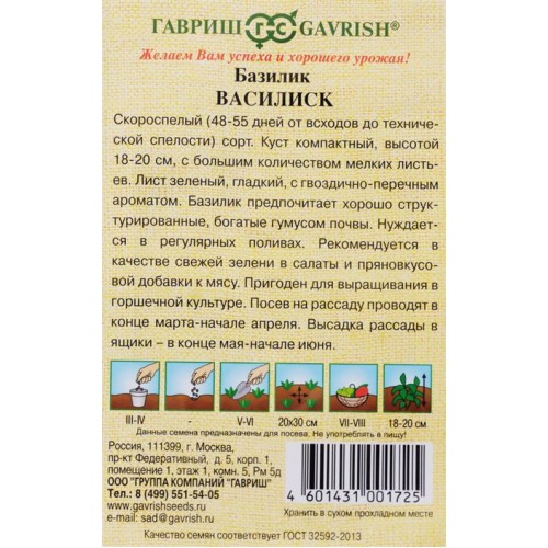 Семена ГАВРИШ Семена от автора, Базилик Василиск, Арт. 1071856082, 0,1г в магазинах Лента