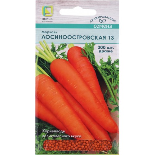 Семена ПОИСК Авторские сорта и гибриды, Морковь Лосиноостровская 13, в драже, 300шт в магазинах Лента