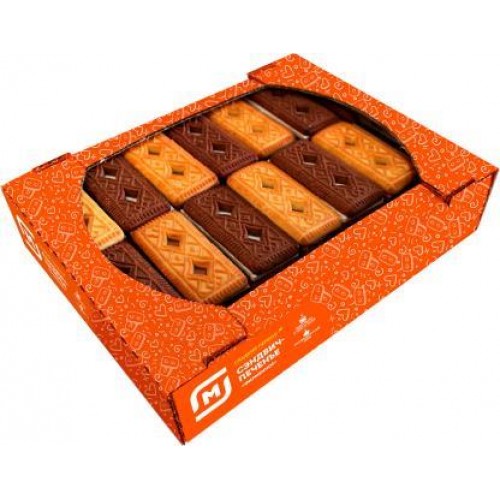 Сэндвич-печенье «Магнит Фирменное» весом 500 грамм - это вкусное и питательное кондитерское изделие, изготовленное по уникальному рецепту. Два тонких слоя хрустящего печенья соединяются нежной кремовой прослойкой, создавая неповторимый вкусовой ансамбль. Упаковано в картонную коробку с ярким привлекательным дизайном. Идеально подойдет для семейного чаепития, а также в качестве перекуса во время рабочего дня. Порадуйте себя и своих близких этим чудесным сэндвич-печеньем от «Магнита»!