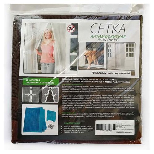 Сетка антимоскитная для дверного проема на магнитах коричневая, 100х210 см (kastd) в магазинах Ашан