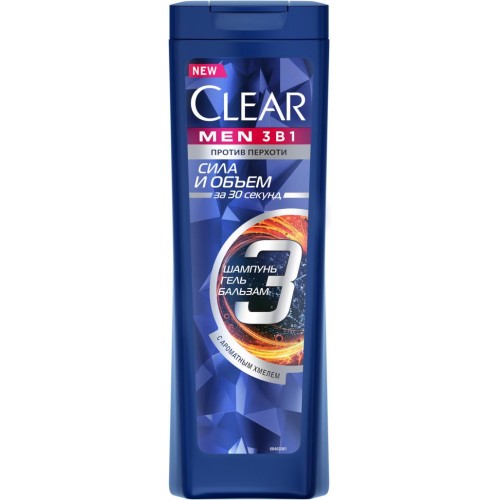 Шампунь-бальзам для волос мужской CLEAR Men 3в1 Сила и объем, 400мл в магазинах Лента