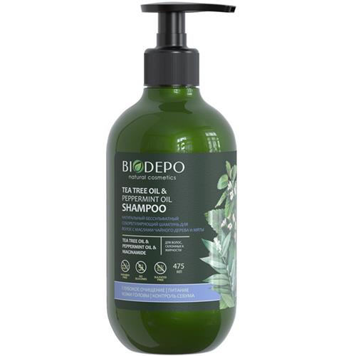 Шампунь Biodepo натуральный себорегулирующий для волос с маслами чайного дерева и мяты, 475мл в магазинах Перекресток