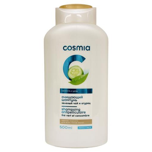 Шампунь для волос Cosmia Зеленый чай и огурец очищающий против перхоти, 500 мл (kastd) в магазинах Ашан
