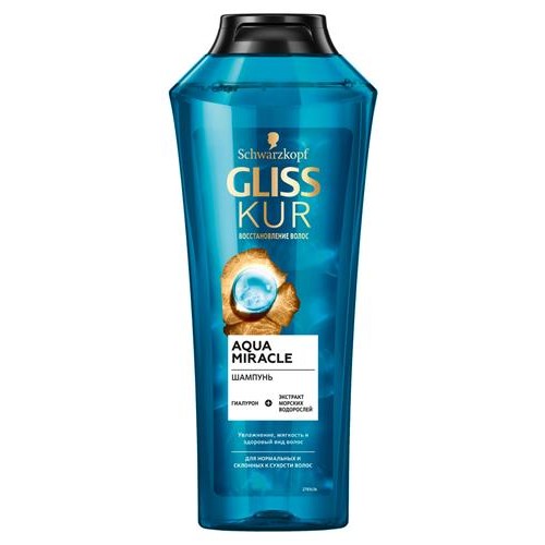 Шампунь для волос Gliss Kur Aqua Miracle для нормальных и склонных к сухости увлажнение и мягкость, 400 мл (kastd) в магазинах Ашан