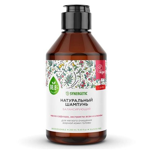Шампунь для волос Synergetic Натуральный бессульфатный Балансирующий для мягкого очищения жирной кожи головы, 250 мл (kastd) в магазинах Ашан