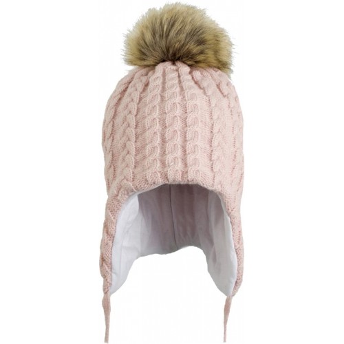 Особенность этой шапочки - оригинальный пышный меховой помпон, который не только украшает изделие, но и дополнительно защищает уши ребенка от холода. Шапочка легко регулируется по размеру головы с помощью мягких завязок, обеспечивая надежную посадку.