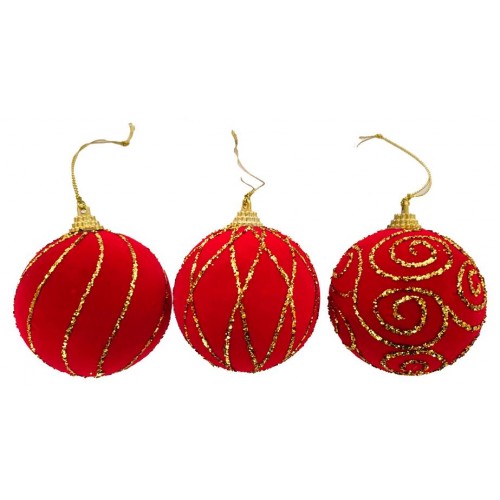 Шар Золотой орнамент красный, 8 см (kastd) в магазинах Ашан