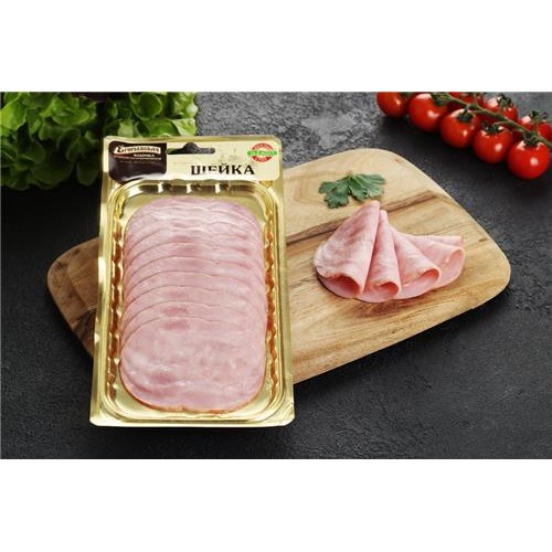 Шейка изготовлена из самой мягкой и сочной части свиной туши, благодаря чему обладает неповторимым вкусом и ароматом. Процесс приготовления включает горячее копчение и варку, что делает мясо особенно мягким и нежным. Продукт представлен в виде мясной нарезки для удобства сервировки, идеально подходящей для быстрого и вкусного завтрака или обеда.