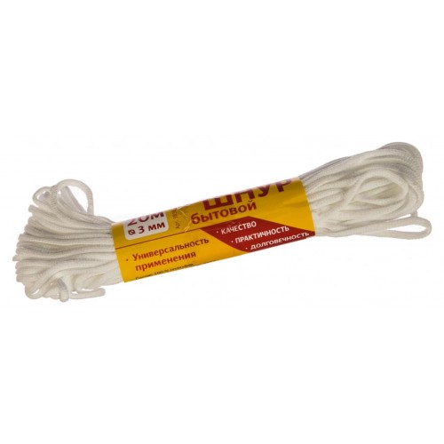 Шнур бытовой Шнурком белый 20 метров диаметр 3мм (kastd) в магазинах Ашан