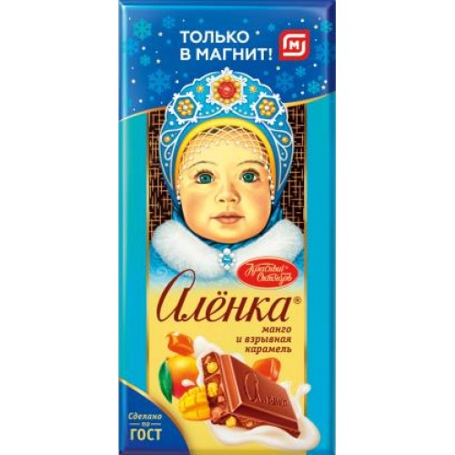 Шоколад Аленка молочный с карамелью и манго 90г в магазинах Магнит