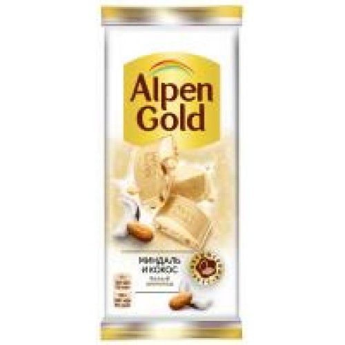 Шоколад Alpen Gold белый с миндалем и кокосом, 90 г в магазинах Дикси