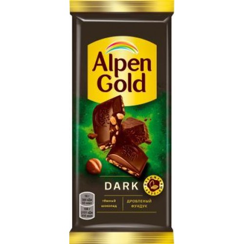 Шоколад Alpen Gold Dark Темный с дробленым фундуком 80г в магазинах Магнит