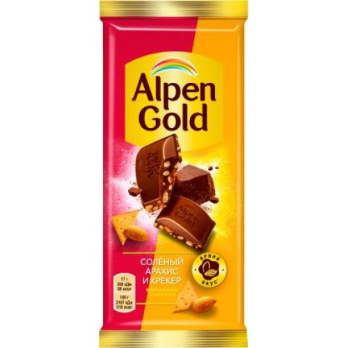 Шоколад Alpen Gold молочный Соленый арахис и крекер 80г/85г в магазинах Магнит
