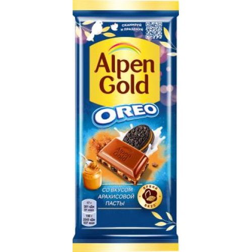 Шоколад Alpen Gold Oreo Молочный с арахисовой пастой и печеньем 95г в магазинах Магнит