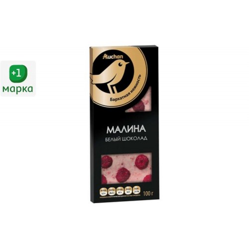 Шоколад АШАН Золотая птица белый с малиной, 100 г (kastd) в магазинах Ашан