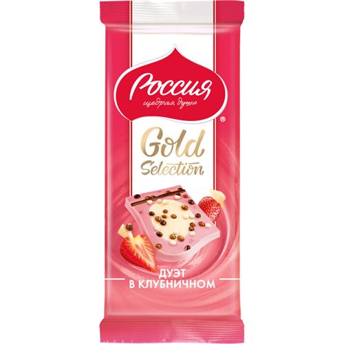 Шоколад белый Россия  Щедрая Душа! Gold Selection Дуэт в клубничном, 85г в магазинах Перекресток