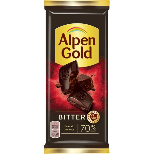 Шоколад горький ALPEN GOLD Bitter 70% какао, 80г в магазинах Лента