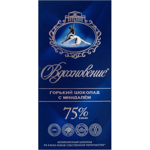 Шоколад горький ВДОХНОВЕНИЕ Элитный с миндалем 75% какао, 100г в магазинах Лента