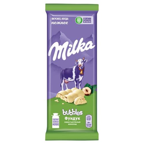 Шоколад Milka Bubbles белый пористый с фундуком, 83 г (kastd) в магазинах Ашан
