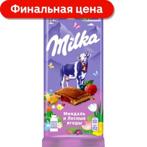 Шоколад Milka Молочный Миндаль и лесные ягоды 85г в магазинах Магнит