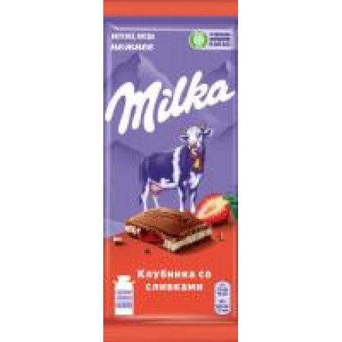 Шоколад Milka молочный с начинкой клубника со сливками, 90 г в магазинах Дикси
