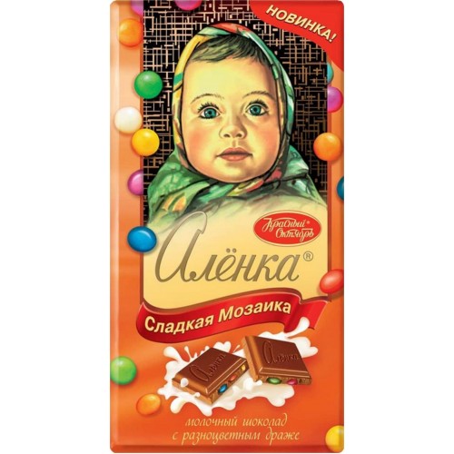 АЛЕНКА Сладкая мозаика - это восхитительный шоколад с разноцветным драже, который поднимет настроение и добавит ярких эмоций в каждый момент. Полумрак молочного шоколада пронизывают яркие вспышки разноцветного драже, словно веселые огоньки. Тающая и нежная текстура плитки идеально дополняется задорным хрустом сахарной глазури. Этот шоколад чуть более сладкий, чем классическая Аленка, но именно это делает его идеальным для того, чтобы скрасить даже самый хмурый день. Теперь этот потрясающий шоколад доступен в по привлекательной цене, а держатели карты покупателя могут воспользоваться значительной скидкой. Спешите порадовать себя и своих близких этим изумительным лакомством!