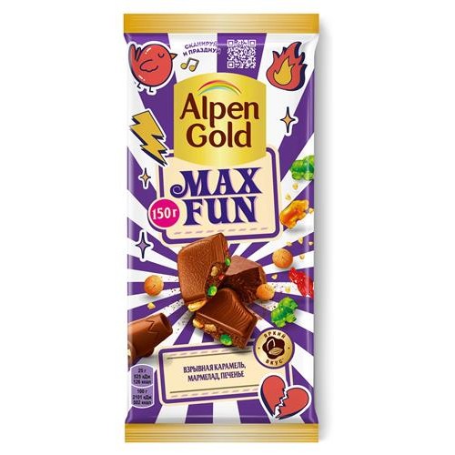 Шоколад Alpen Gold Max Fun молочный с карамелью мармеладом и печеньем, 160 г (kastd) в магазинах Ашан