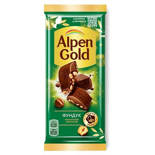 Шоколад Alpen Gold молочный с дробленым фундуком, 90 г (kastd) в магазинах Ашан
