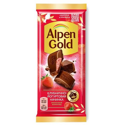 Шоколад Alpen Gold молочный с клубнично-йогуртовой начинкой, 90 г (kastd) в магазинах Ашан