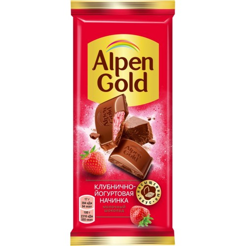 Шоколад молочный ALPEN GOLD с клубнично-йогуртовой начинкой, 85г в магазинах Лента