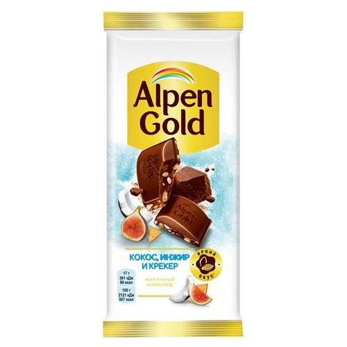 Шоколад Alpen Gold молочный c инжиром кокосовой стружкой и соленым крекером, 90 г (kastd) в магазинах Ашан